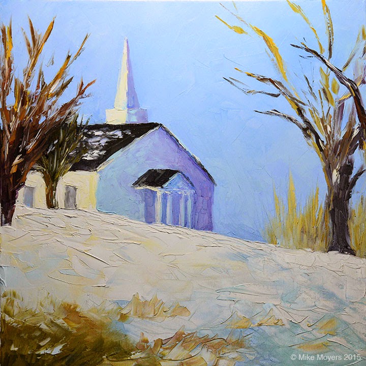 Going big again. This time I painted an 24"x18" enlargement of one of favorite landscapes from last year's 30. It is of a fiery sunrise lighting the hilltop of a frozen landscape.